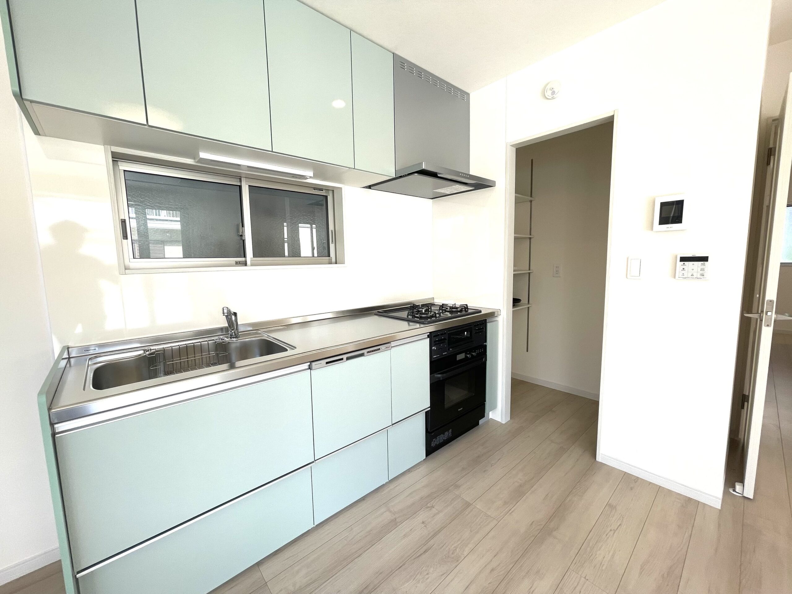 可愛いらしいグリーン色のキッチンです♪
