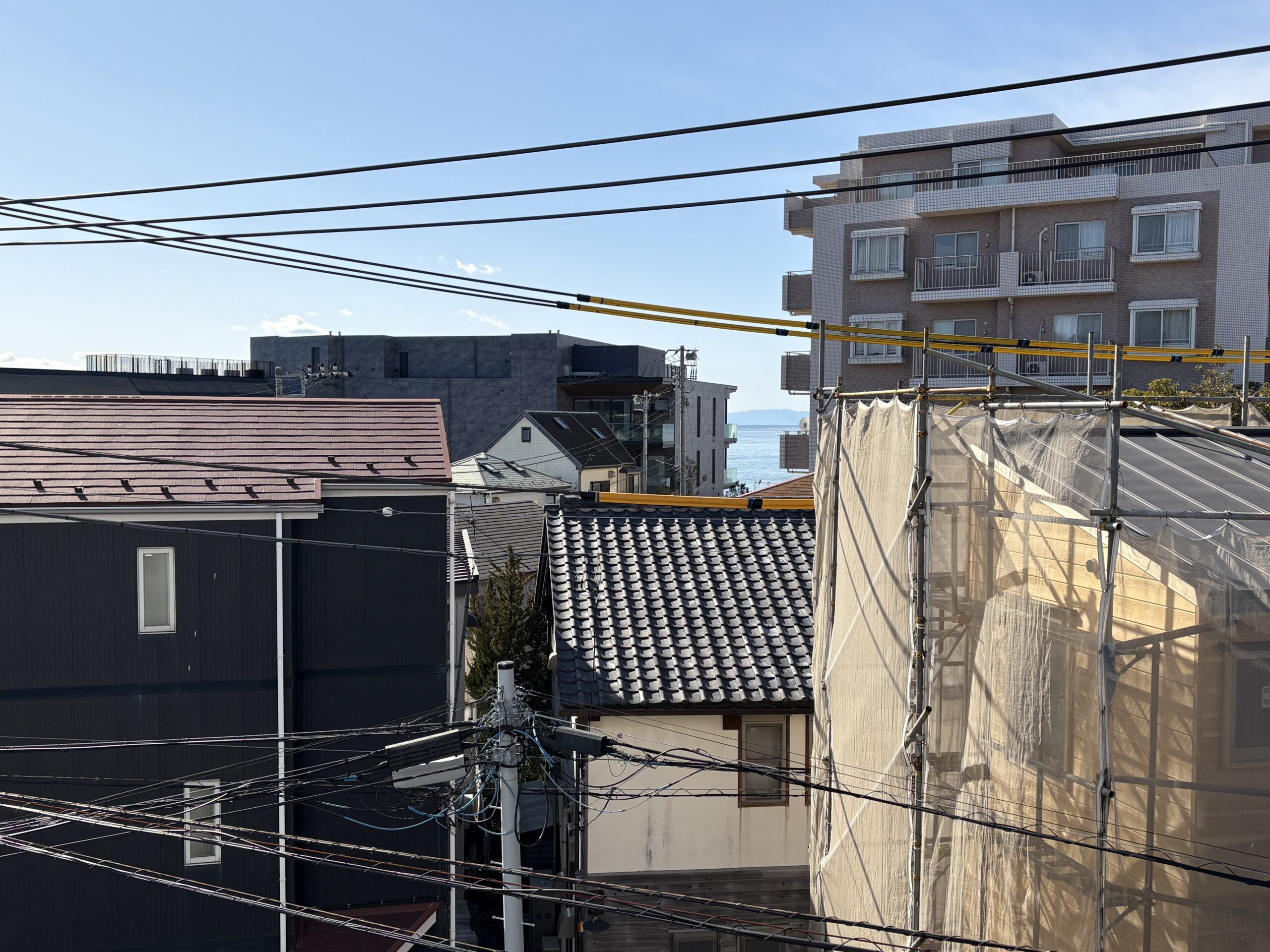 バルコニーから少しだけ海が見えます。